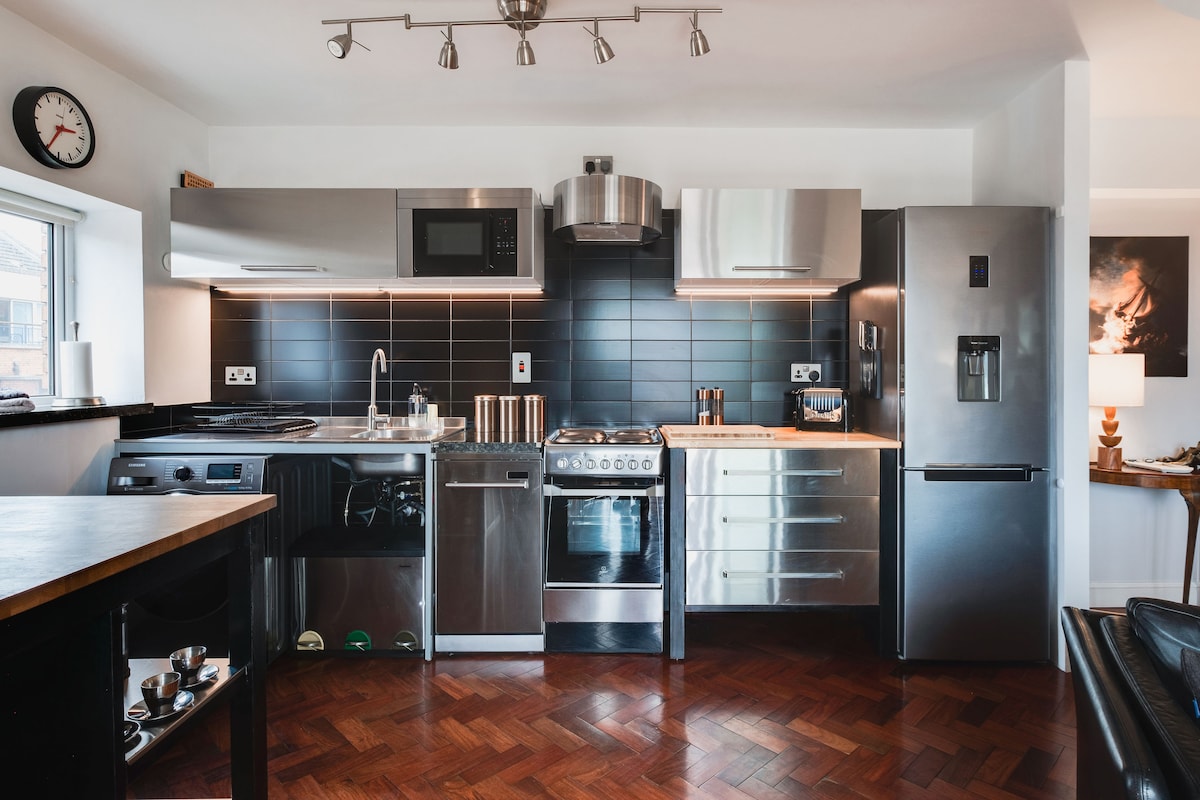 Awarded Top 10% of Airbnb Homes 🏆 An entire apartment, nothing shared, Fast Wi-Fi (95-100 mbps), Google home, Sky 50 inch HDTV & Netflix. You’re welcomed with a Continental Breakfast with personalised Milk Choice and all the essentials you’ll need for a superb stay. Giving the amazing location this apartment is very peaceful inside. It faces the garden side and as there are only 10 apartments in the block, you’re guaranteed a great night’s sleep. No lift though, sorry