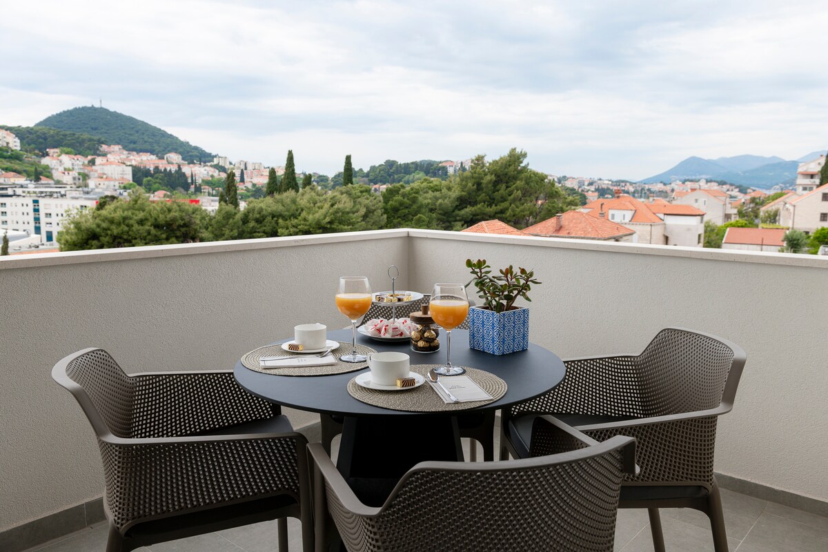 Njut av svepande, unik utsikt över Dubrovniks gamla stad och Medelhavet från din balkong. Smakfullt möblerad, bekväm, rymlig och ljus lägenhet i ett lugnt, charmigt grannskap i en sluttning, med gott om bekvämligheter och reserverad parkering framför. Lägenheten har nyrenoverat badrum och kök, och är utrustad med Wi-Fi, A/C och värme, kabel-TV, Bluetooth-högtalare, tvättmaskin och torktumlare, bekväma madrasser och kuddar, bomullssängkläder, lyxiga toalettartiklar och mycket mer.