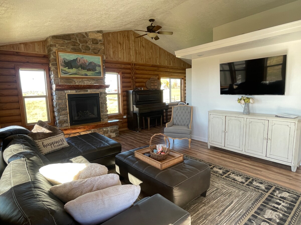 Koppla av med familj och vänner på detta nyrenoverade fridfulla ställe. Två stora familjerum, öppen spis, tvättmaskin, torktumlare på båda våningarna, 2 kök, 5 sovrum 10 bäddar, 2 badrum, extra frys på nedre våningen. Bubbelpool, pickleballbana, massor av parkering samt en betesmark för djur och platser att parkera husvagnar och husvagnar. Fantastisk utsikt över Uintah Mountains med enkel tillgång till olika platser i Uintah Basin. Om du vill boka bara en nivå av huset kan du skicka ett meddelande för prissättning.