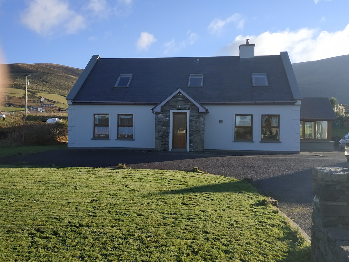 Modernt, rymligt hus med 4 sängar, 10 sovplatser bekvämt. Det ligger bredvid havet mitt i det mest fantastiska kustlandskapet i Wild Atlantic Way på Slea Head. Huset har utsikt över Dingle Bay och har en fantastisk utsikt över Skelligs och Blasket-öarna. Slea head ligger bara en promenad bort. Coumeenole beach ligger bara 2 miles bort och Ventry beach ligger bara 4 miles bort. Dingle ligger 9 miles bort och Killarney ligger 50 miles bort.