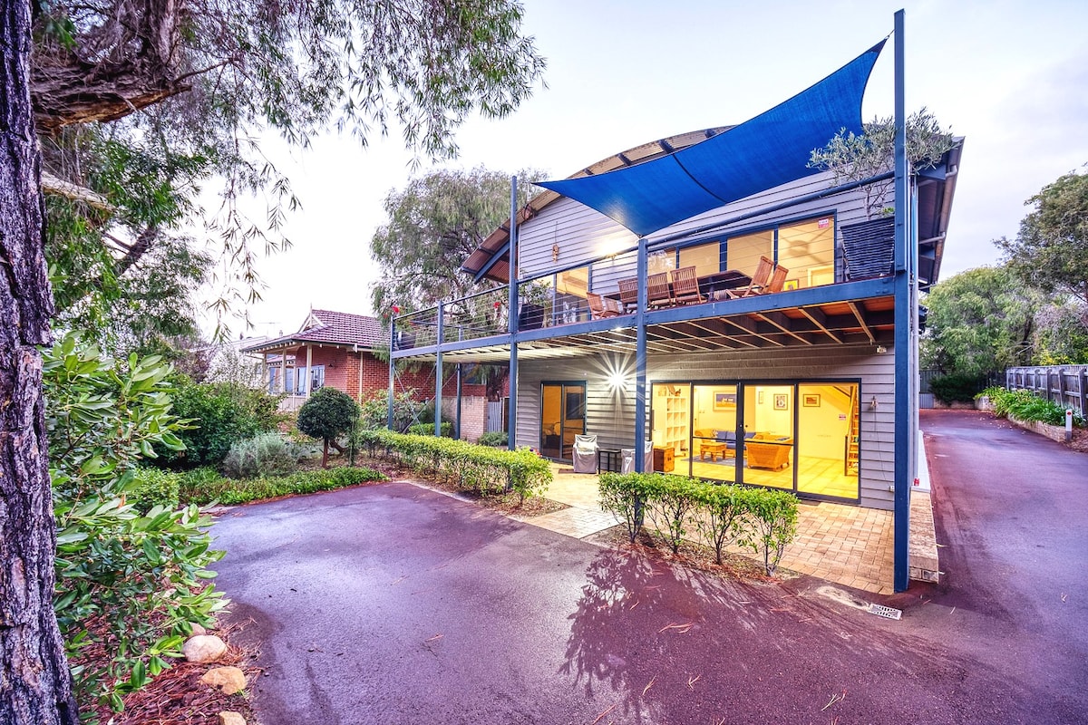 Lyx, utsikt och komfort. Gratis säker parkering. Med promenadavstånd till allt. Strand, kaféer, barer, brygga, parker. Du har hela rymliga översta våningen med egen ingång och stor öppen balkong. Oavbruten utsikt uppför 14 trappsteg inuti och ett fast räcke. Njut av lyx för att bara koppla av, en rolig strandsemester eller en familjesemester! Slappna av på balkongen och njut av landskapet. Nära Margaret River surf och vingårdar. Bra designerkök, grill eller promenad till kaféer, restauranger i närheten!
