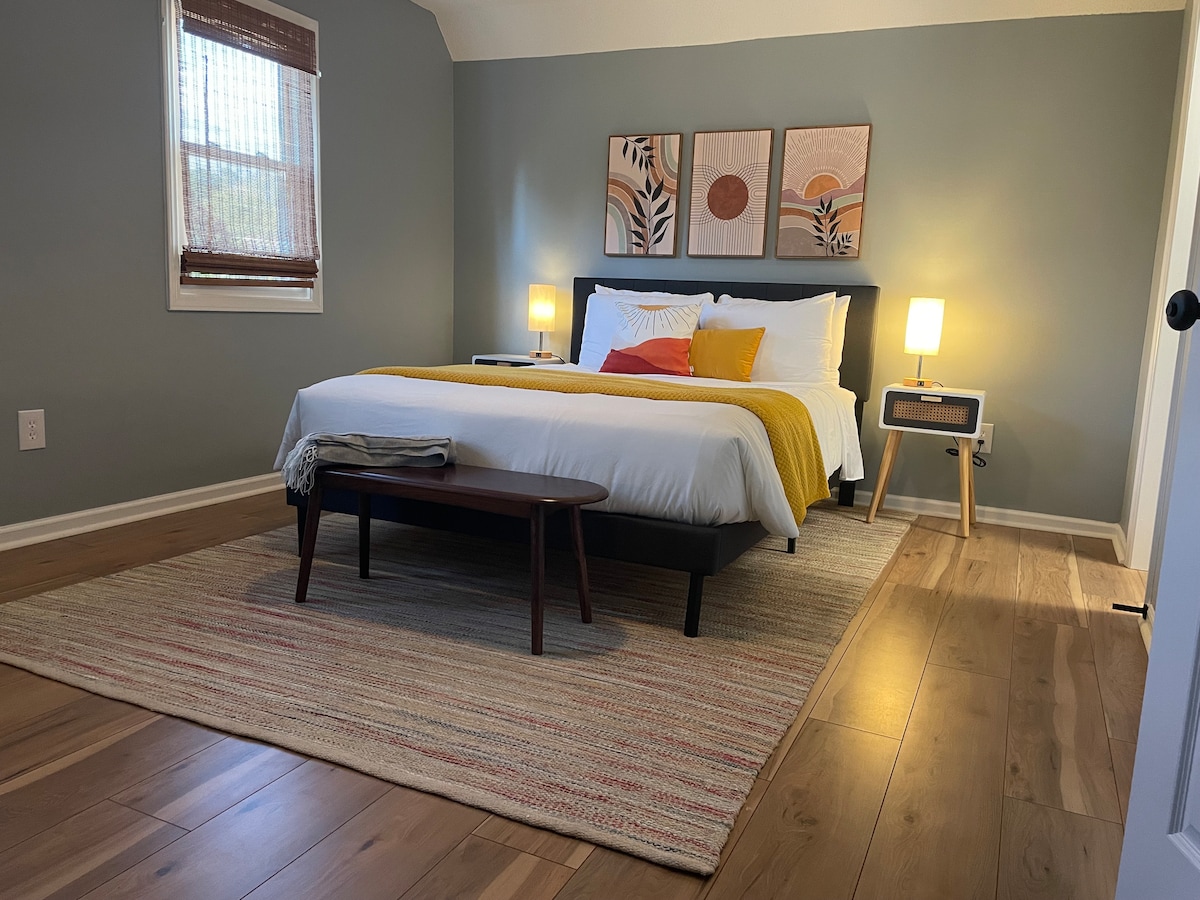 En väggmålning fyllde ett sovrum med ett fullt badrum och pentry anslutet till vårt hus med egen separat ingång. Beläget mindre än 5 minuter med bil till centrala Durham med enkel tillgång för dem som föredrar att resa med cykel eller till fots till Ellerbee Creek trail. Centralt beläget till Duke University och Duke Medical. Perfekt för längre vistelser för besökande proffs samt kortare vistelser för att njuta av allt Durham har att erbjuda.
