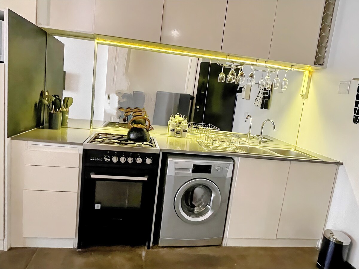 Härligt executive loft, fullt möblerat inklusive ✔ Fullt soldriven med 2-8 timmars batteribackup baserat på ✔ användning 50Mpbs + WiFi ✔ Smart-TV med Netflix ✔ Säker skuggad parkering för ett fordon ✔ Två arbetsplatser ✔ Tvättmaskin ✔ Diskmaskin ✔ Kylskåp ✔ Gasspis med ugn ✔ Mikrovågsugn ✔ Elektrisk filt ✔ Fullt laddade köksredskap. Beläget centralt och nära till alla bekvämligheter. Lämpligt för tre personer. Lämpligt för långtidsvistelser också.