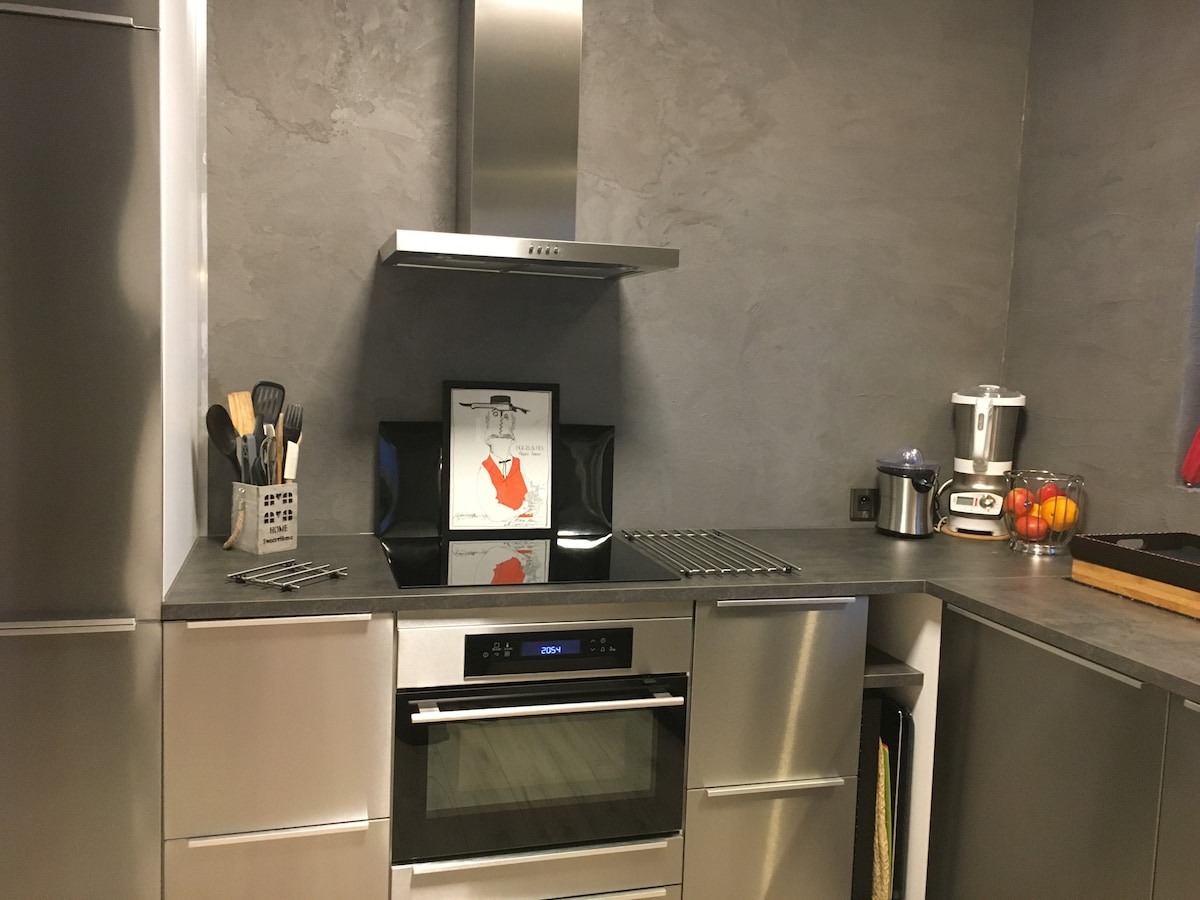 Skäm bort ! Boendet här är inkluderat frukost! Hos oss kan du koppla av och njuta av 1 eller flera dagar av en trevlig vistelse i stugan med frukost i B & B. Du har ett privat vardagsrum med kök, badrum och sovrum. Du delar inte med någon! Du har en privat terrass, Wifi, TV, värme/luftkonditionering, hårtork, tvättmaskin,... och parkering. I grannskapet finns flera restauranger.