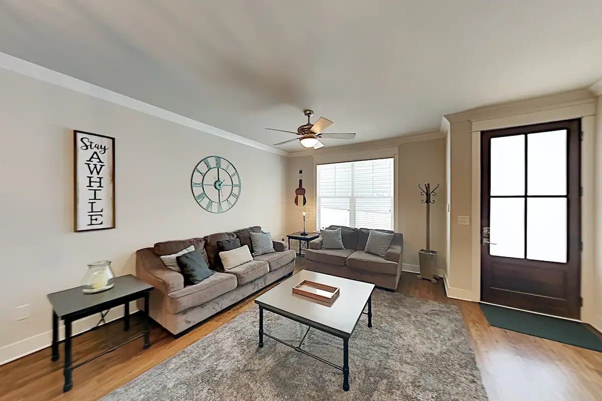 Fly till din oas i Nashville! Denna eleganta 2 000+ kvadratmeter stora retreat ligger bara några minuter från Broadway, Germantown, Top Golf & Nissan Stadium — perfekt beläget för allt som Music City har att erbjuda. Med sovplats för upp till 10 personer i 3 lyxiga sovrum med ultrabekväma sängkläder, elegant inredning och genomtänkta detaljer överallt. För ultimat bekvämlighet finns 3,5 badrum och ett gratis garage för 2 bilar. Stil, utrymme och läge i ett — din Nashville-dröm väntar!