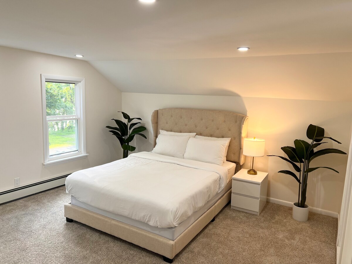 Välkommen till vår charmiga och eleganta lägenhet på övervåningen, perfekt för en mysig tillflyktsort! Njut av integriteten i att ha hela boendet för dig själv. Få tillgång till lägenheten direkt genom bakdörren, uppför utomhustrappan. Vi är bekvämt belägna bara 10min bilresa från Bradley International Airport. Inuti hittar du: - Ett bekvämt sovrum med en dubbelsäng, komplett med fräscha sängkläder - Fullt utrustat kök, utrustat: Grytor, stekpannor, bakfat, etc. Tvättmaskin och Torktumlare