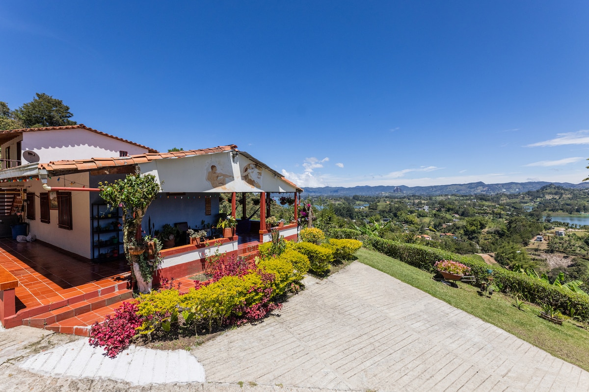 Njut av Guatapé i detta spektakulära stora hus för 20 personer (vuxna och/eller barn över 2 år). Huset har en spektakulär utsikt och har direkt tillgång till sjön och brygga för båt. Du kan koppla av på panoramadäcket som omger huset och njuta av den rymliga jacuzzin för 14 personer. Vardagsrummet har ett rymligt utrymme som är idealiskt för familjedelning och en öppen spis att njuta av medan du tittar på en film. Viktigt: om du har husdjur, lägg till det i husdjursalternativet