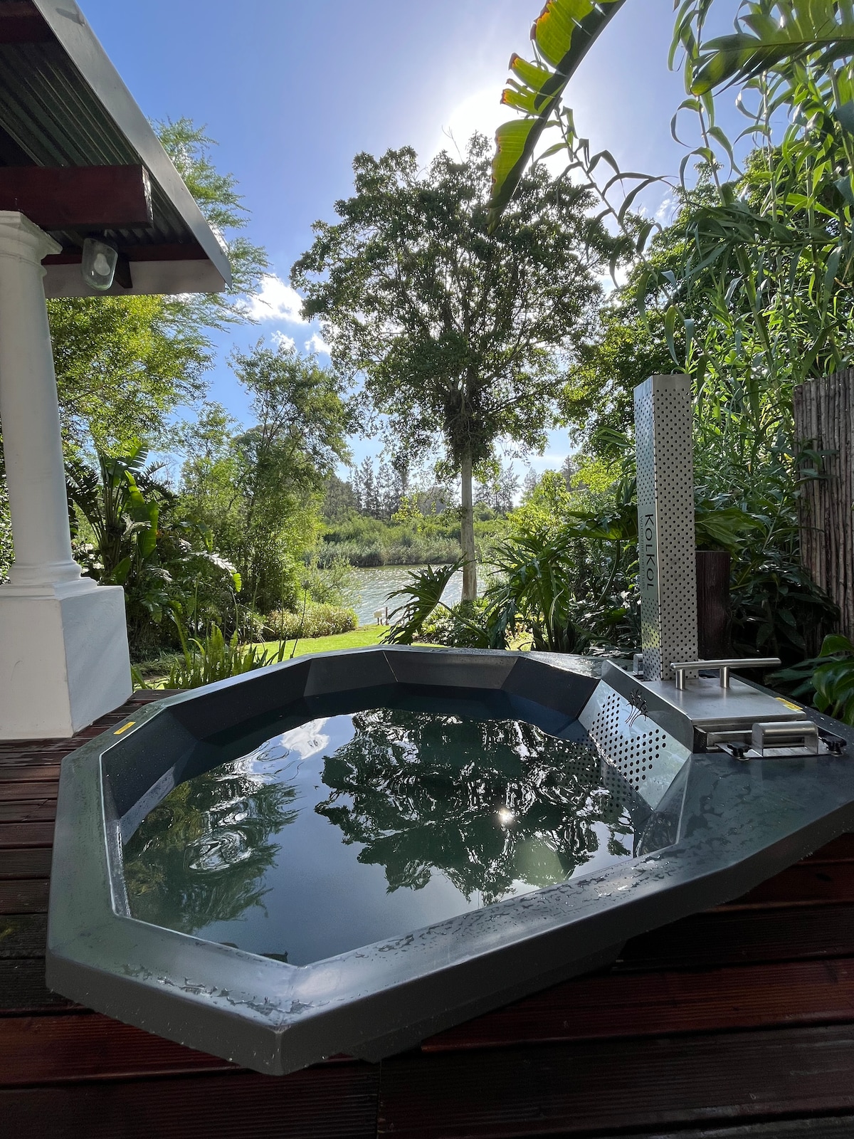 Denna stuga i öppen planlösning innehåller en king size-säng, ett vardagsrum och ett privat badrum. Denna enhet har en pentry och öppnar upp till en veranda som har utemöbler, utomhusdusch och Kolkol vedeldad bubbelpool. Härlig utsikt över floden kan beundras från trädgården.
