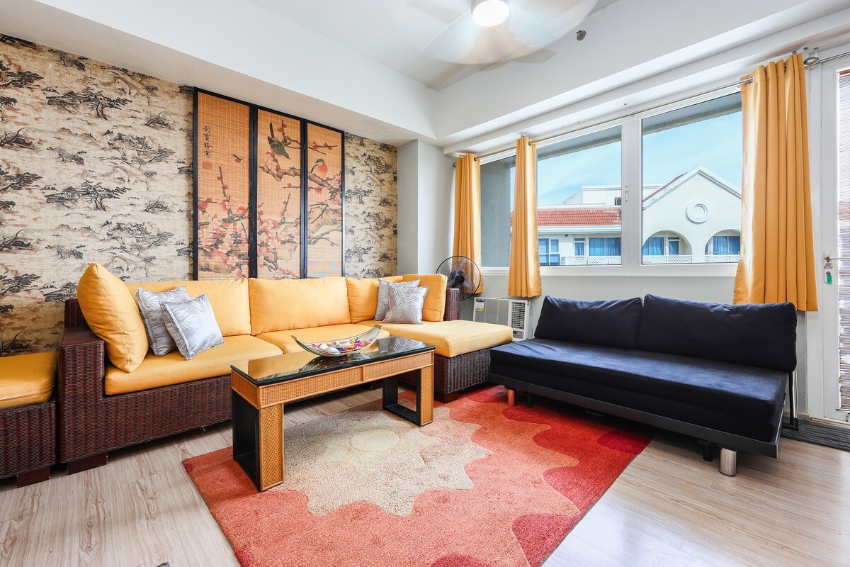 Executive Studio for 2 people 15 minutes to Airport New quality Queen Bed & Sofa Free filtered Drinking Water,Japanese Dispenser Wi-Fi/SmartTV/FreeNetflix Safe Smart Lock Hot Shower, Bidet FullyEquipped Kitchen Balcony,Seaviews&Breezes GordonRamsay/Japan/Korean/Spanish/Filipino Restaurants,retail Concierge,Pools,24hrSecurity Supermarket, Bakery,Starbucks,McDonald’s, Pharmacy. 400m walk to Beach, Beach Passes Php350/person daily NOTE:Construction/Noise next door.Discounted daily rate is 30%