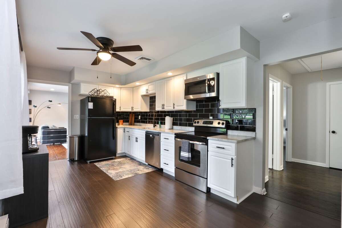 Fly till vårt nyrenoverade 3BR, 1,5 bad Ranch hem; där modern komfort möter lugn avkoppling. Inbäddat i ett pittoreskt grannskap, denna skönhet rymmer upp till 6 vuxna och erbjuder även två stora familjerum! ✔ 3 sovrum för lycklig sömn ✔ 1,5 badrum för bekvämlighet ✔ Fullt utrustat kök för kulinariska äventyr ✔ Central luftkonditionering för perfekt komfort ✔ Stor inhägnad bakgård för utomhusnöje Din extraordinära tillflyktsort börjar här. Upptäck mer nedan och gör denna tillflyktsort till din idag!
