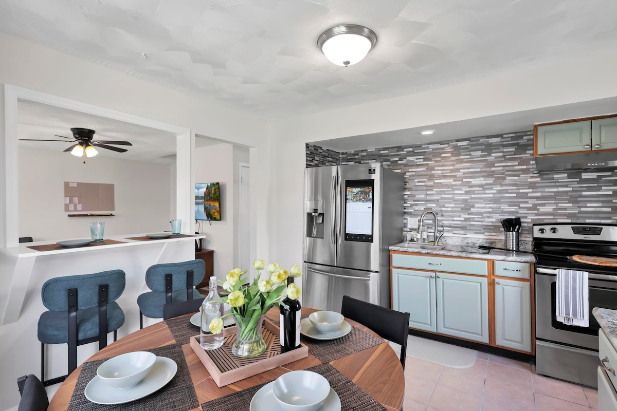 Detta charmiga boende ligger mitt i Beechwold och är utformat för att du ska känna dig som hemma medan du utforskar Columbus eller bara kopplar av. Lugnt grannskap med enkel tillgång till 71 och 315. Ta en promenad i det vänliga grannskapet, eller umgås på den inhägnade bakgården. Restauranger, livsmedel, barer och shopping är snabba resor 1,2 km för din bekvämlighet. Njut av det fulla köket, det stora matbordet, 58-tums 4K-tv och PS4 under din vistelse. Sovrummet på bottenvåningen har en Queen-säng, sovrummet på övervåningen har 2 enkelsängar.