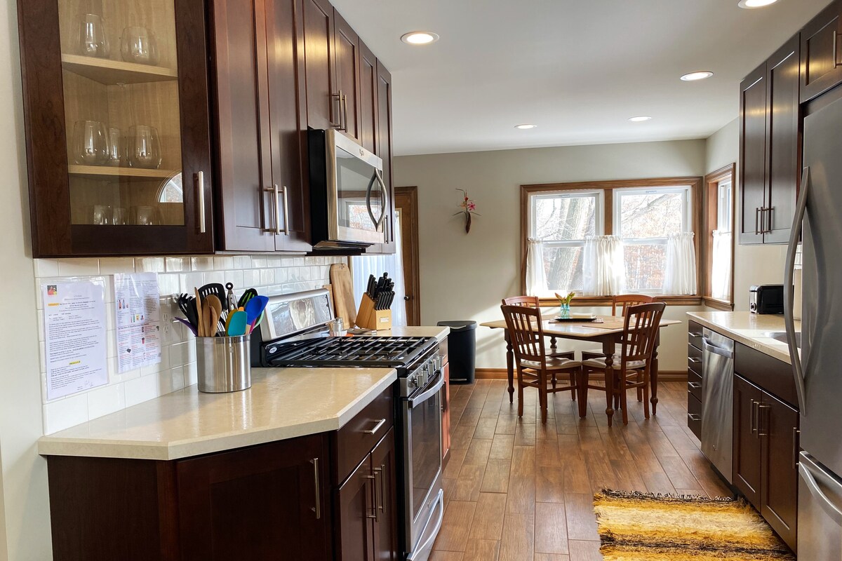 SpruceItUp är ditt perfekt charmiga, superrena, fullt utrustade, lugna och mysiga hem hemifrån, mitt i hjärtat av Eau Claire. Läget kunde inte vara bättre! Vi ligger precis på EC:s vackra cykel- och vandringsled, en kort promenad till Pablo, Farmer's Market, restauranger i centrum, bryggerier och kaféer, Phoenix & Carson Parks. Hoppa direkt på bussen eller hoppa till UWEC — bara 3 minuters bilresa. Ta med dina barn — vi är redo! Vi välkomnar dig till vårt hem!