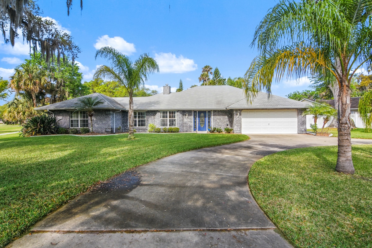 Stay in this cozy, hidden treasure. Located 1.5 blocks from the intracoastal waterway. Park your boat in the spacious, private back yard where you can sunbathe and enjoy a dip in the private, heated pool after a fun day on the river. Kayaking, biking, and the beautiful sunrise are just a short walk from your front door. Beautiful New Smyrna Beach and the city's quaint shopping district are just a 10-15min drive north. The space center & Orlando theme parks are 1.5hr from your front door.