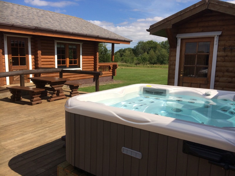 Lyxig timmerstuga med privat bubbelpool och bastu