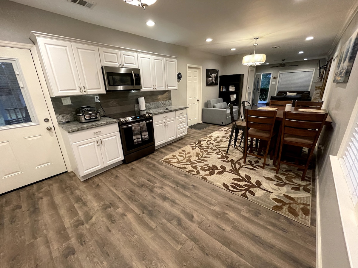 Den Pinterest-vÀrdiga tillflyktsorten för din grupp i ett lugnt och fridfullt grannskap strax utanför Savannah. Tillbringa tid pÄ bakgÄrden med att spela utomhuslekar eller koppla av under pergolan. Flytta in för att njuta av den rymliga, moderna designen frÄn mitten av Ärhundradet i vardagsrum och sovrum. Köket Àr fullt utrustat sÄ att man kan laga mat om man vill! Vi ligger bara nÄgra minuter frÄn Savannah Airport & Pooler, 20 minuter frÄn centrala Savannah, 45 minuter frÄn Tybee Island och 50 minuter frÄn Hilton Head.