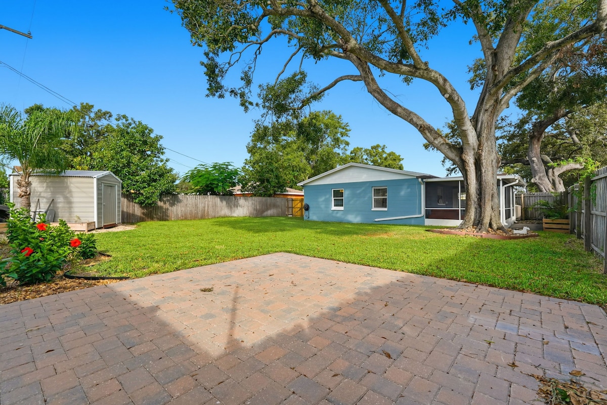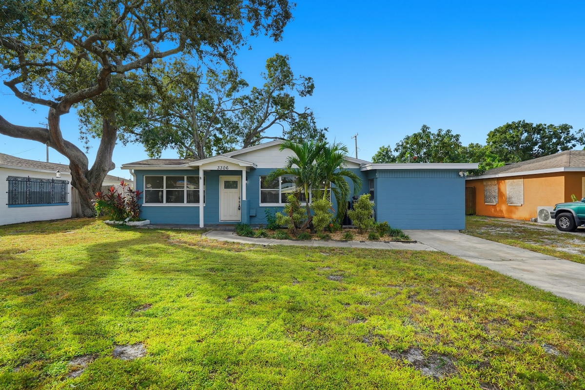 Nära Tampas bästa mat och underhållning! Vårt fridfulla och miljövänliga fullt renoverade utrymme inkluderar ett fullt utrustat kök, queen memory foam-säng och bekväm bäddsoffa — perfekt för par, ensamma resenärer eller små familjer. Promenera till en klassisk arkad och hantverksölbar i slutet av gatan, eller utforska ett stort urval av internationell mat i närheten. Njut av expansiv parkering utanför gatan, en avkopplande uteplats och ett giftfritt, miljömedvetet utrymme.