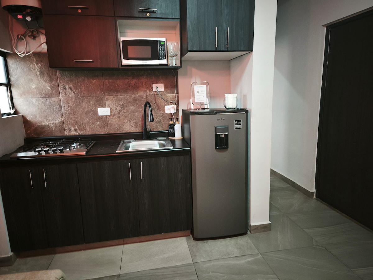 Ny loft i dubbelhöjd, för enkel- eller parvistelser, beläget i södra delen av staden, nära Plaza Sendero Sur och central busstation. Den har en 2 ton minisplit, tvätt och torkning, 1100 lts tinaco som fylls på tisdagar, torsdagar och lördagar tidigt på morgonen. Utrymmet har ingen parkeringslåda, men du kan parkera i det tilldelade området när bokningen väl har gjorts.