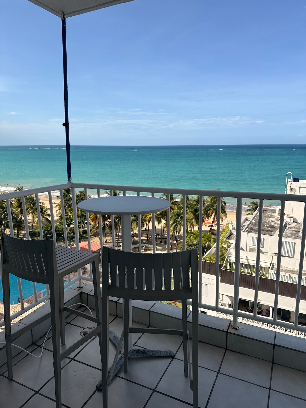 Njut av en premium utsikt över en av de bästa stränderna i Karibien! Denna lägenhet ligger på 16:e våningen och har 1 sovrum och 1 badrum, bekvämt kök, 1 tilldelad parkeringsplats och ett gemensamt utrymme med en (dubbel) bäddsoffa. Den fantastiska utsikten över stranden är allt! Balkongen blir din favoritplats för morgonkaffe eller solnedgång med ett glas vin... Lägenheten har 24/7 säkerhet, pool, lekplats på plats och fullständig tillgång till den bästa stranden i Isla Verde! Litet skrivbord för affärsresenären.