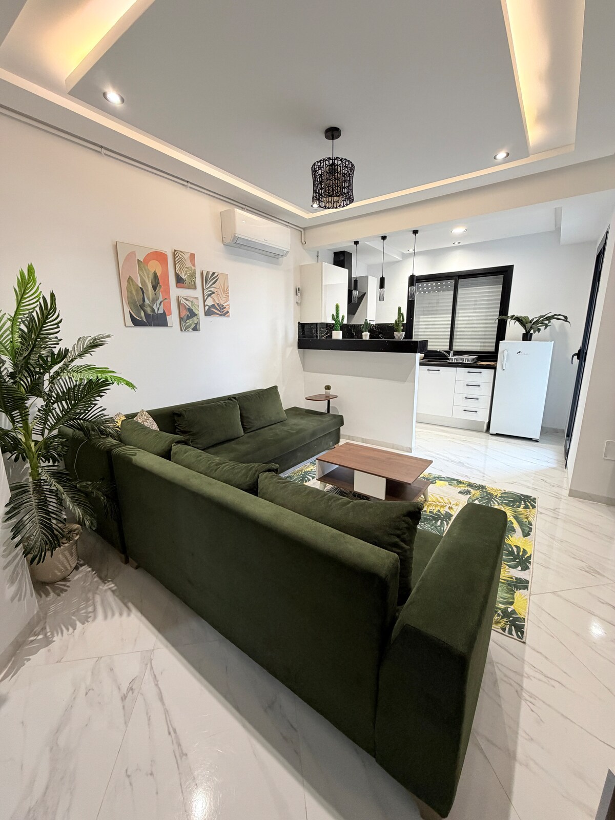 Koppla av i detta lugna och mysiga boende, lyxigt utrustat och med en harmonisk inredning som garanterar en trevlig vistelse. Lägenheten ligger i ett lugnt bostadsområde, har ett vardagsrum med bäddsoffa, ett sovrum med balkong och en välutrustad pentry. 📍Beläget nära alla bekvämligheter: Carrefour, restauranger, kaféer, lounger, gym, apotek... Tunis Carthage flygplats ligger 5 minuter bort.