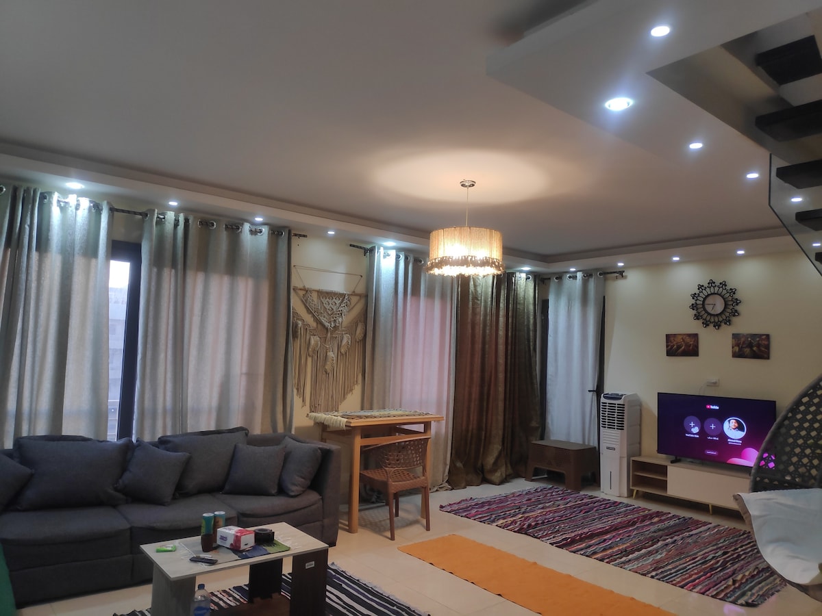 Welcome to our 3-bed, 3-bath, 220 sqm Maadi gem! Enjoy open views, a fully equipped kitchen, a 55" Smart TV, and lightning-fast Wi-Fi. Conveniently located near shops and restaurants, Carrefour and 50 Hub Mall are just 2 minutes away. Explore Maadi's charm and Cairo's attractions from this stylish and central retreat. Perfect for families or groups exploring Cairo's vibrant scene. No single male guests allowed. Ladies, Couples & Families only.