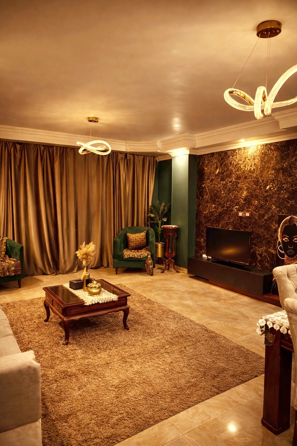 Upptäck vår 1-rumspärla i Golden Gates Compound – 5 minuter till Maadi, 10 minuter till New Cairo och Nasr City, 15 minuter från Kairo flygplats och Heliopolis. Fullt utrustat amerikanskt kök, en elegant blandning av moderna och boho vibbar. Njut av utsikt över trädgården, säkerhet dygnet runt och bekvämligheter på plats som kaféer, restauranger, Carrefour Hyper Market och till och med ett sjukhus. Koppla av med en 65-tums smart-TV, komplett med streamingtjänster, och håll kontakten med snabbt Wi-Fi. Ditt äventyr i Kairo börjar här!