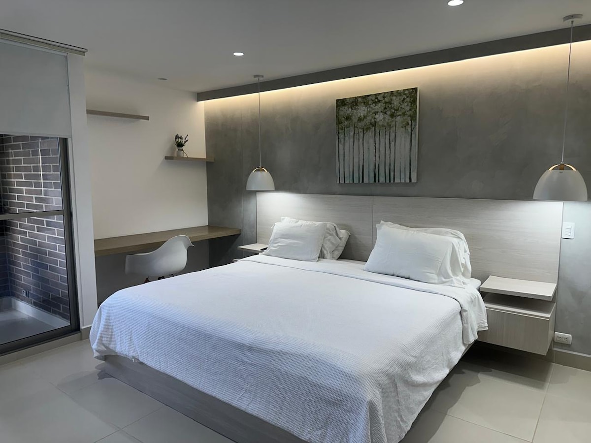 4,88 av 5 i genomsnittligt betyg, 50 omdömen10 minuter till flygplatsen Modern Studio, Jacuzzi, Pool, Gym