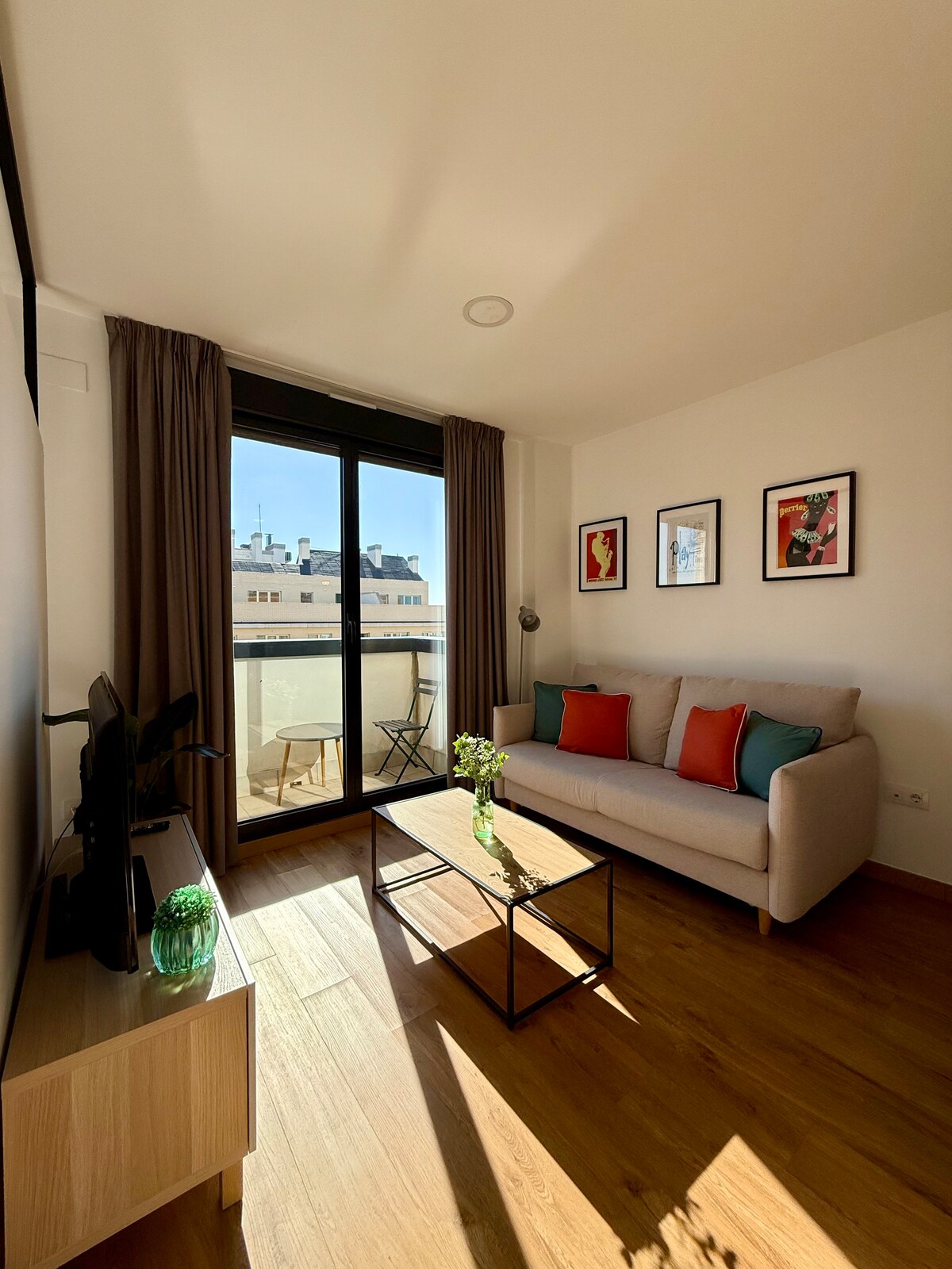 Snygg nordisk design möter varmt spanskt boende i detta boende där djärva färger framhäver den moderna inredningen. Koppla av i de lugna öppna utrymmena eller loungen på den soliga balkongen med utsikt över gatorna. Du kan njuta av ett uppfriskande ögonblick i det rymliga badrummet eller förbereda dig en underbar måltid med det fullt utrustade och möblerade köket. Och när du är trött på din utforskande dag i staden, inget bättre än lugnet i sovrummet och den bekväma sängen.
