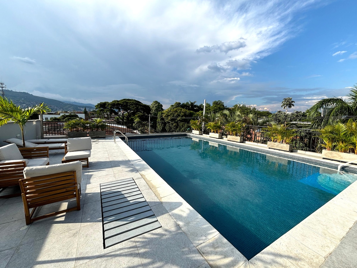 ✨Vive Cali desde el piso 12 con vistas únicas y brisa fresca🍃. Estudio moderno con cocina, sala, habitación y baño privado, cerca a todo. 🛏️Relájate con aire acondicionado, 2 TVs (sala y habitación), blackout y luces ambientadas. 🏊♀️Piscina y bañera al aire libre. 💪Terraza 360°, coworking y gimnasio. 🚗Parqueaderos comunitarios por orden de llegada. 🌃Cerca de restaurantes, centros comerciales, universidades y atractivos turísticos.