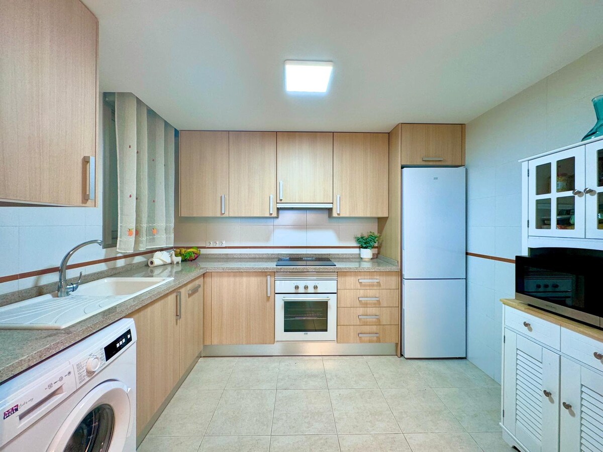Ta med hela familjen till detta fantastiska boende med massor av plats för nöje och vila nära AP-7 (3 min) och 300 m från stranden. Lägenheten är så ny med alla nödvändiga apparater för hushållet. Koppla av i en lugn och vacker miljö nära stranden och havet. Byggnadens innergård har en pool med dusch, padelbana och lekplats. Byggnaden har 6 hissar och rymliga korridorer och grader. Det finns många kostnadsfria parkeringsplatser framför byggnaden och bakom byggnaden.