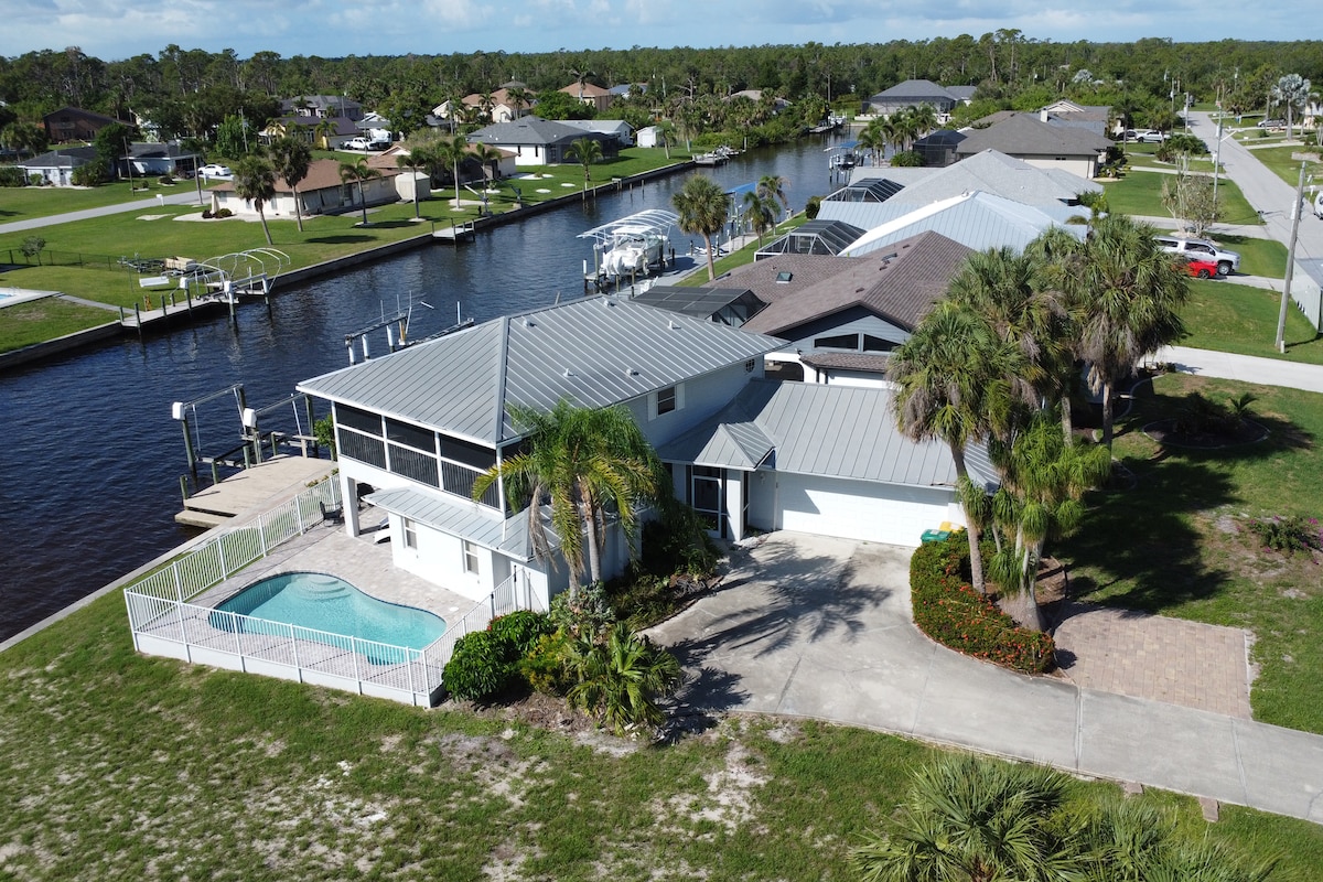 Get away from the hustle & bustle! 20 minutes from Manasota Key Beach and 20 minutes from historic down town Punta Gorda. This Luxurious 2,800 SQF, Vacation Home is located in a peaceful neighborhood, right on the Myakka River! 3 bedrooms. 3.5 baths, w/pool, hot tub and an awesome viewing deck for morning coffee or and evening wine! Fish off the back or take in a game at Charlotte Sports Park!
