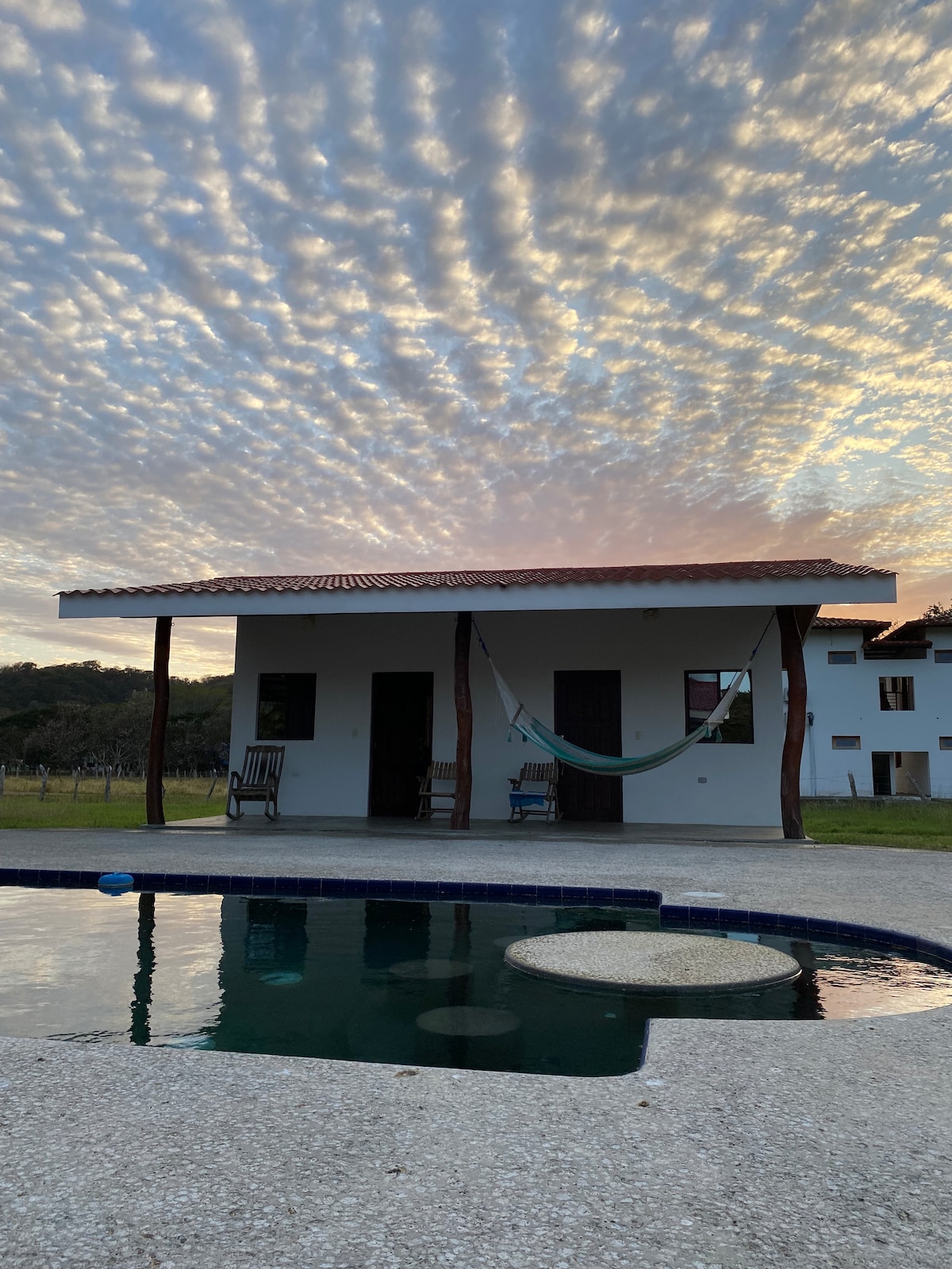 Casa La Serena erbjuder stil, avskildhet och komfort i detta fantastiska boende i boho-stil med 2 sovrum, 2,5 badrum med utsikt över havet och djungeln och en vacker privat pool för din njutning. Städning, stöd för elproduktion och ett lokalt team att träffas och hälsa på, det är det perfekta stället för smekmånadsresenärer, par och familjer också! Villan ligger i Balcones de Majagual och har otrolig utsikt över Stilla havet. 200 mega fiberoptiskt internet, nyligen omgjord pool