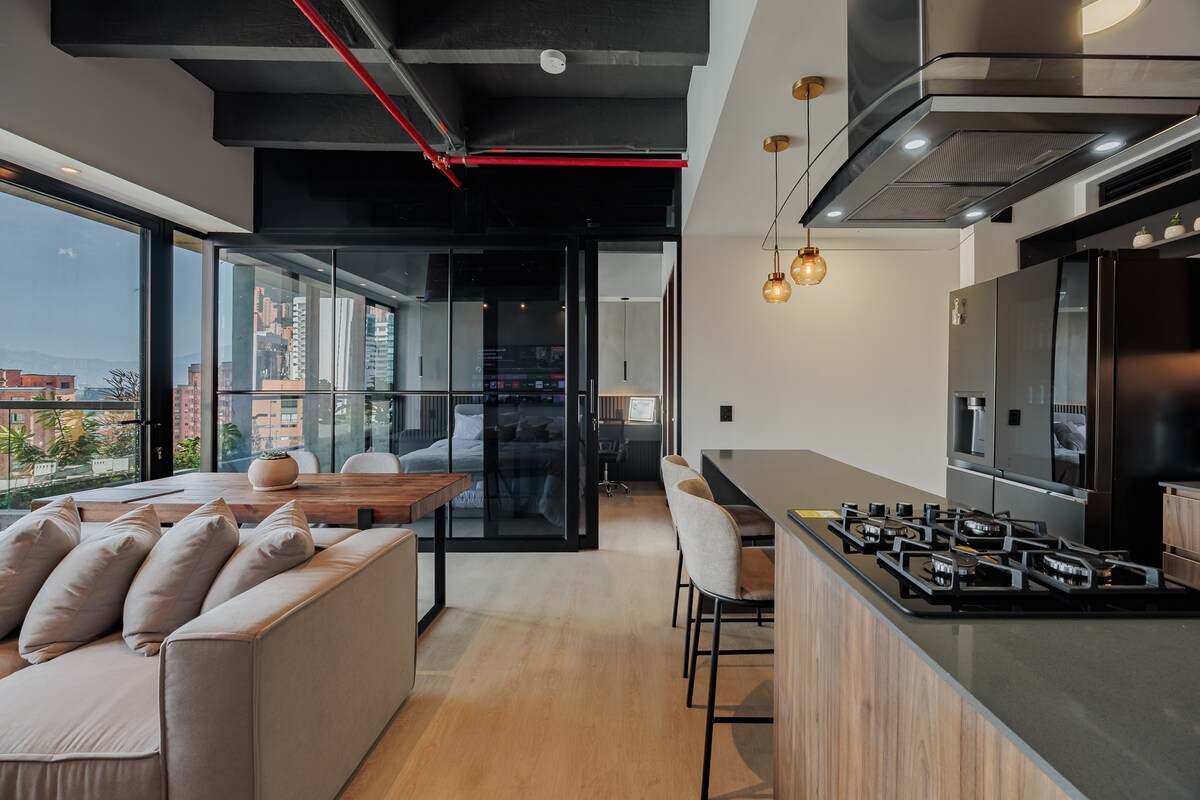 FRUKOST INGÅR! Bästa läget i Medellin, med den bästa servicen 24 timmar, byggnaden har en våt yta med den mest otroliga utsikten. Byggnaden ligger bara ett kvarter från Parque Lleras och Parque del Poblado, med en takterrass i närheten med en otrolig utsikt. Tunnelbanan ligger en kort promenad bort, tillsammans med restauranger och nattliv. Vi har ett utmärkt läge som är lätt att ta sig vart du vill. Det är den säkraste airbnb, jag har övervakningskameror i byggnaden, smarta lås och 24 timmars personal