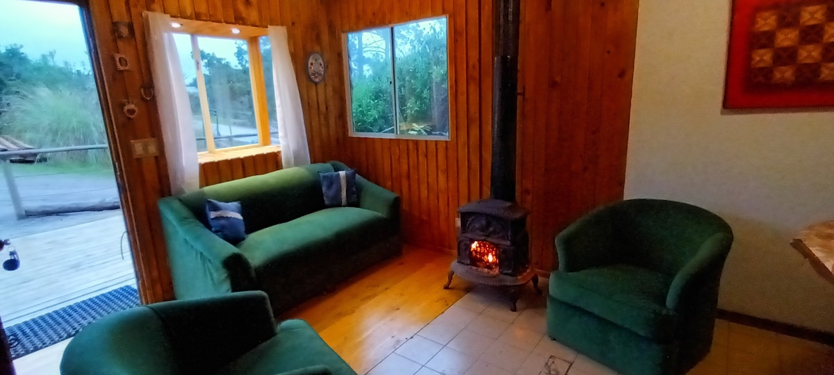 Cabaña/departamento ligger på bottenvåningen, helt oberoende och utrustad med mikrovågsugn, concina disk och litet kylskåp. Det har Wifi, TV, värmare, duschkabin med radio och termoelektrisk. Mysigt, det har ett sovrum och ett vardagsrum där det finns en liten bäddsoffa. Utanför finns parkering, en grill och en plats för en lägereld. För upp till 3 personer, inga husdjur. Endast airbnb-användare, inga agenter tack.