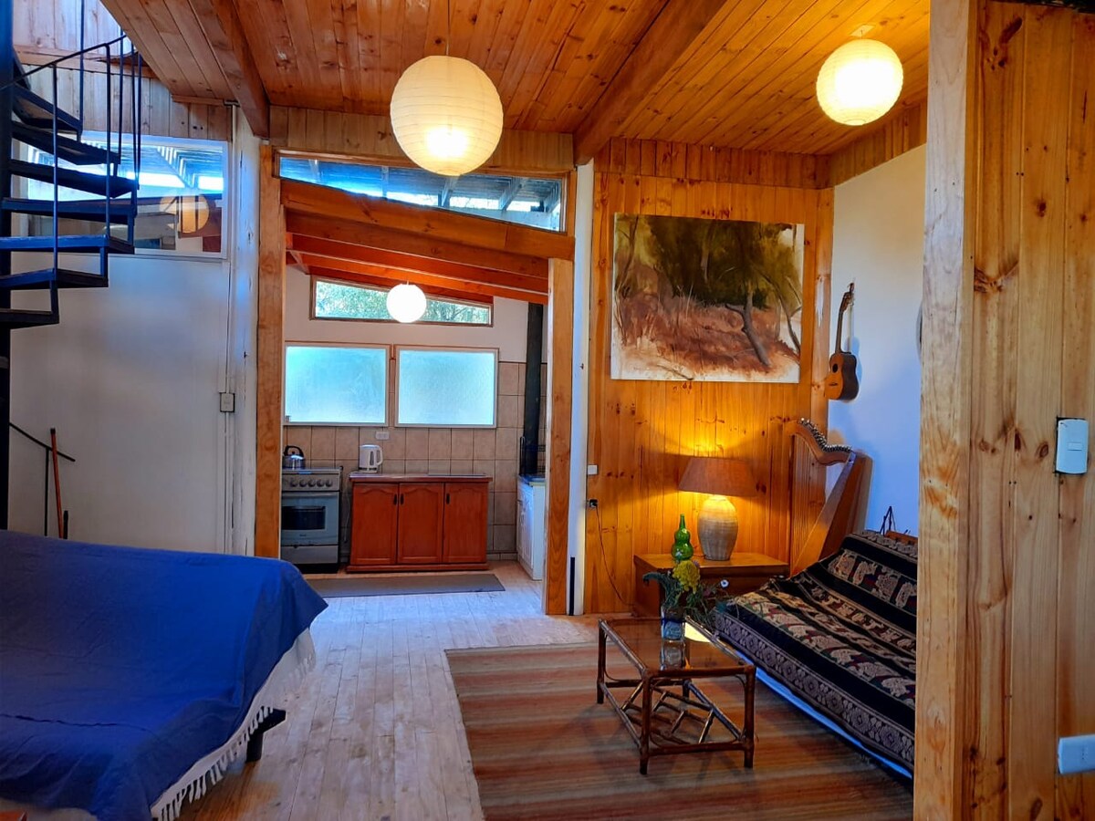 Stuga utrustad för två personer med kruka inkluderad. Vacker skogsvy från det stora sovrummet. Bara 5 minuter från centrum av El Tabo och de viktigaste stränderna.