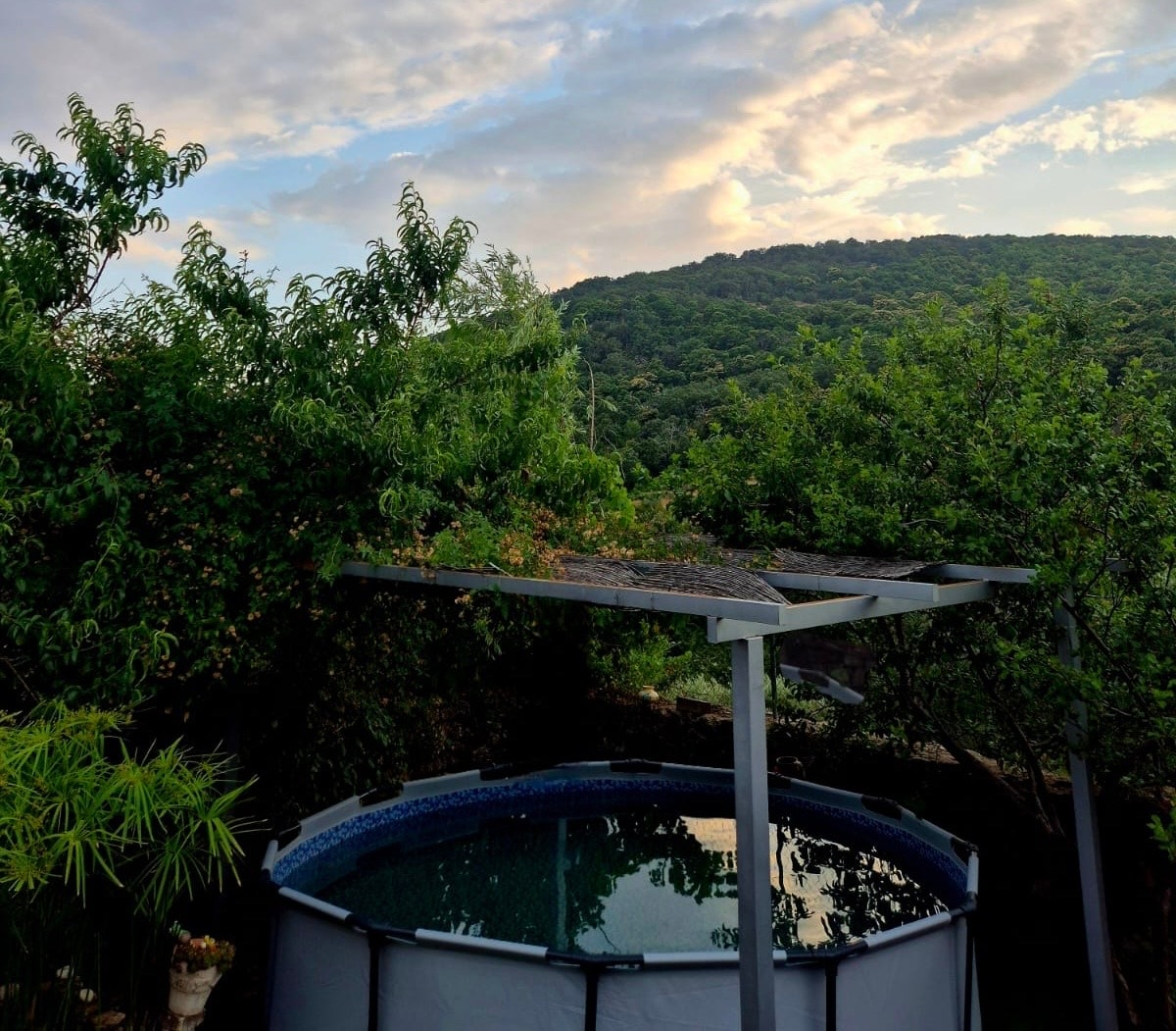 Casita turística rústica en plena naturaleza, en finca particular totalmente cerrada, muy cerquita del pueblo con increíbles vistas al valle y a la montaña, a los pies de la montaña Abandera y cerca de la sierra de gredos o las cuevas del águila, ideal para hacer senderismo o relajarse. Desde la misma puerta sales al GR180. A 500 Metros de la garganta Eliza y 1,5 Kilometros de su presa. Bonito lugar para compartir en pareja o en familia.
