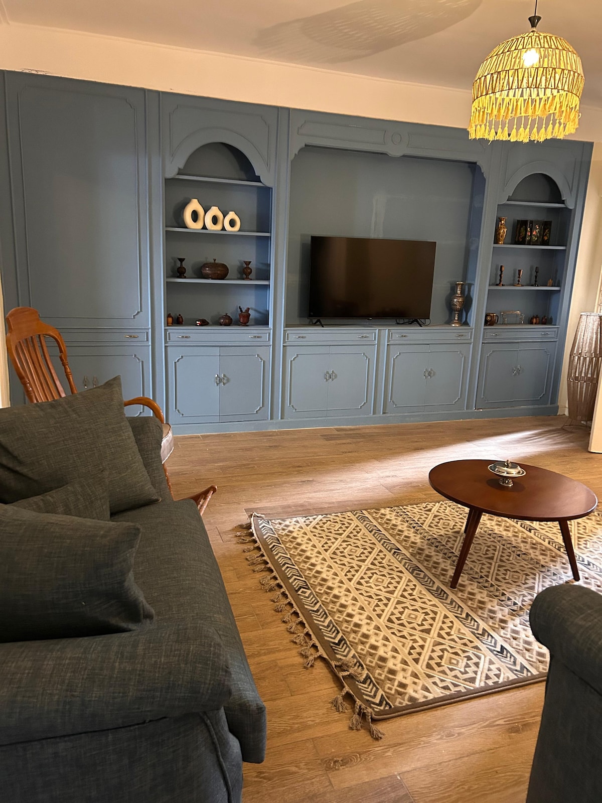 Välkomna till vårt hem i trädgårdsstaden på 5:e våningen med en vacker utsikt. Denna lägenhet med tre sovrum blandar klassisk charm i centrum med modern komfort — rika färger, eleganta möbler och mysiga hörn gjorda för långa samtal och långsamma morgnar. Oavsett om du är här med familj eller vänner är detta utrymme utformat för samhörighet. Centralt läge i centrum — kaféer, gallerier och Nilen bara några steg bort.