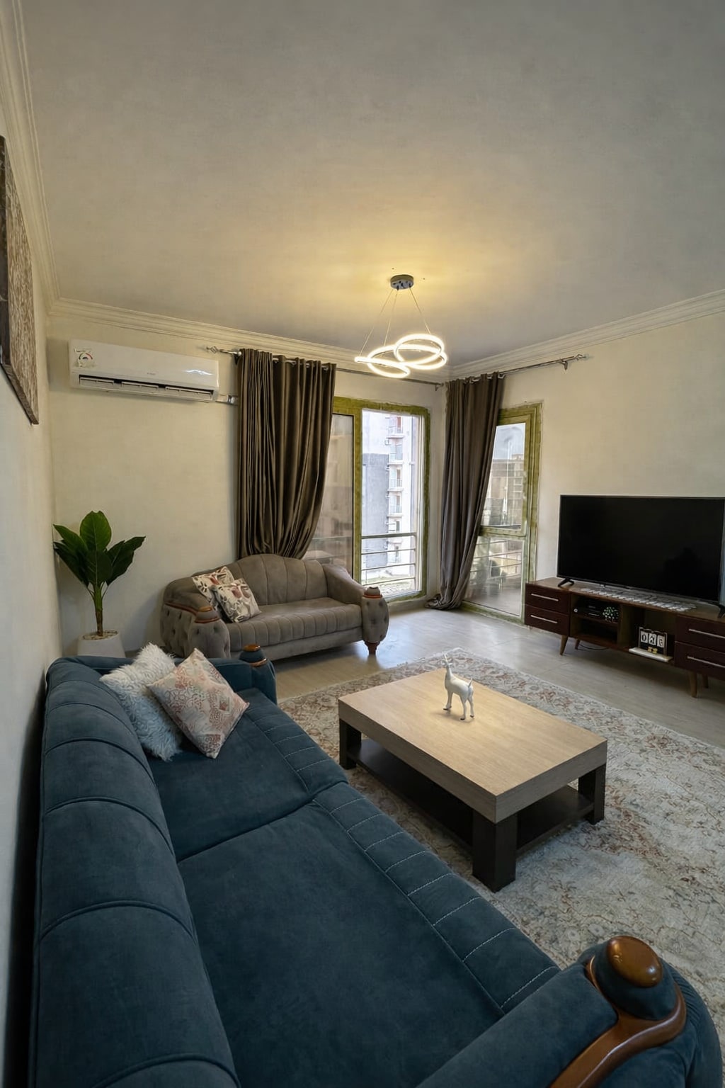Upptäck lyxigt boende i denna helt nya lägenhet med ett sovrum mitt i Sheikh Zayed, den 6 oktober, väster om Kairo. Denna eleganta bostad ligger på 15: e våningen och erbjuder fantastisk panoramautsikt över Sheikh Zayed. Vi ligger bara tre minuters promenad från köpcentret, där du hittar ett brett utbud av restauranger, affärer och underhållningsalternativ