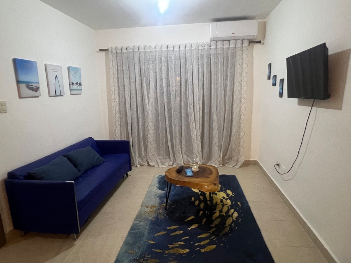 *Mycket viktigt** (Läs hela beskrivningen klicka på mer) Denna enhet ligger på 1:a våningen, mitt boende passar bra för par, äventyrare som reser ensamma och affärsresenärer. Ciudad Juan Bosch är en stad på uppgång området är lite borttaget och en kort bilresa från restauranger* där du behöver en bil, eller Uber för att ta dig runt. Det är 15 minuter från flygplatsen, 18 minuter från kolonialzonen och trevliga restauranger.