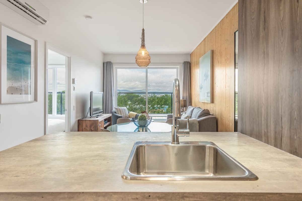 Plaza10 är en modern och elegant lägenhet med enkelrum belägen i hjärtat av Rosemont la Petite Patrie (en stadsdel 1 timmes promenad norrut eller en 15 minuters kollektivtrafikresa från centrala Montreal). Det är ett område fullt av restauranger, kaféer, shopping och underhållning, vilket gör det till det perfekta stället att bo på medan du utforskar Montreal. Närmaste tunnelbanestation ligger 6 minuters promenad bort. Utrymmet har ett fullt utrustat kök, egen terrass, uppvärmda strålande golv, elektrisk öppen spis i vardagsrummet och sovrummet