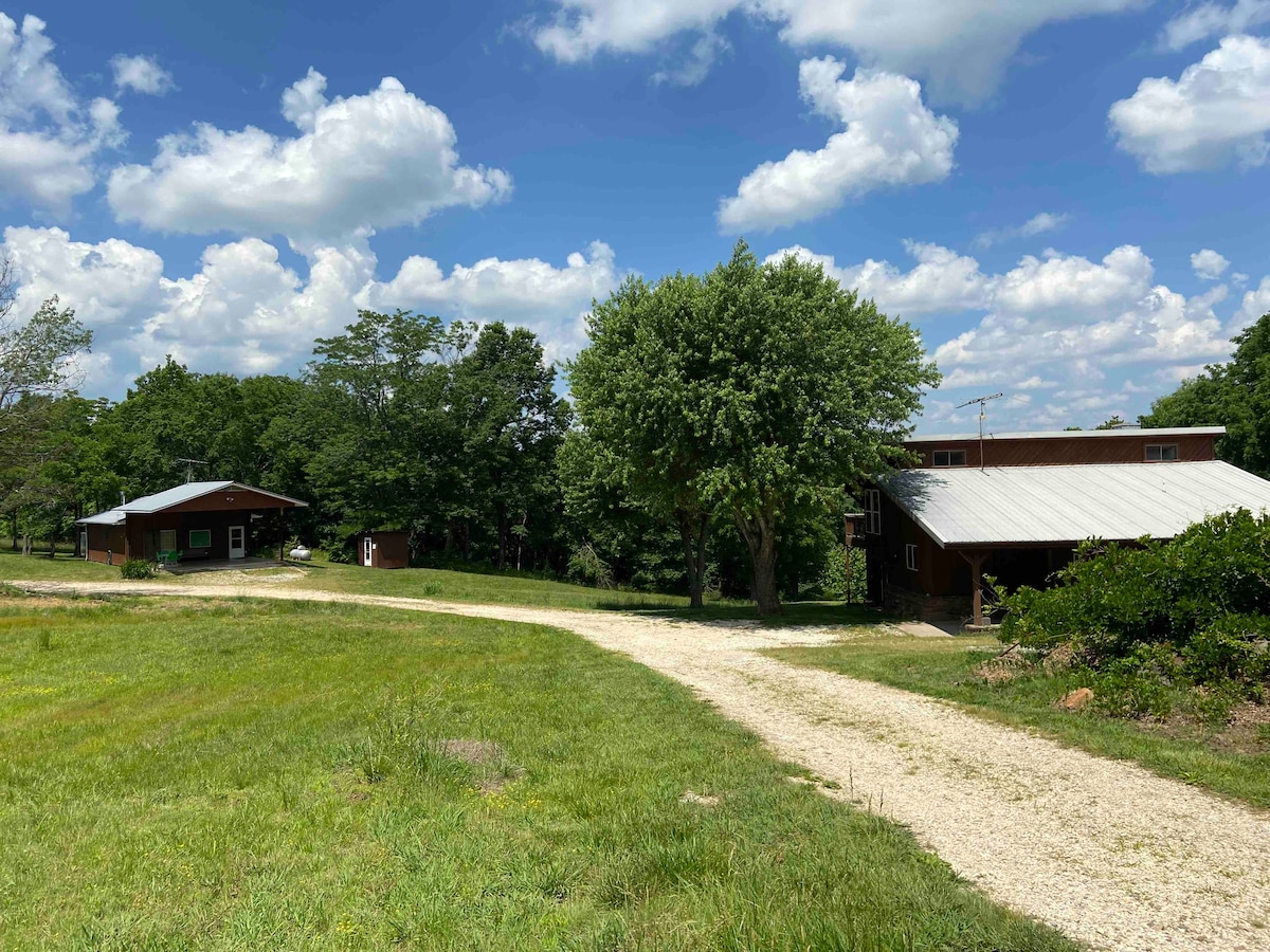 Fly till vår charmiga studiostuga, inbäddad mitt i flera hektar vildmark. Omfamna värmen från en vedspis, koppla av på den rymliga täckta uteplatsen och samlas runt eldstaden under stjärnhimlen. Från verandan kan du bevittna rikligt djurliv. Perfekt för en lugn tillflykt. Djurvänligt med ett inhägnat hästfält. Upplev naturens skönhet i vår stuga, belägen i slutet av en lugn grusväg, 25 minuter söder om Fayetteville/UofA campus.