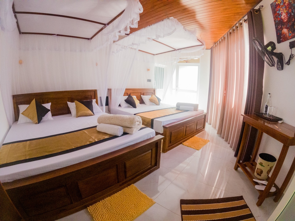 Welcoming to Ella panorama villa.A beautiful and Spacious Room waiting for you! . The family room offers 2 extra large bed, Fully temperd glass doors, air conditioning,Refrigerator, Electric Kettle and Tea and coffee amenities,a private entrance, a wooden terrace with panoramic mountain view as well as a private bathroom featuring a shower. And also 10min Walking distance to the nine arch bridge. We provide Free parking and High speed Wifi facilities.