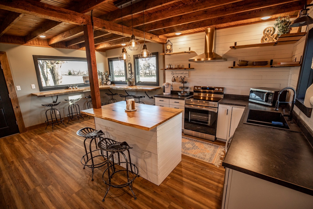 Besök detta 2 sovrum A-ramshus som ligger på 26 tunnland mark med husvagnsanslutningar och parkering, med däck och utsikt över landsbygden, minuter från MInneapolis, Rock city och Highway i-70 ligger 15 minuter bort. Samlas för en släktträff eller stanna när du reser över hela landet i denna unika avskilda fristad. Gaza vid stjärnorna på stjärnskådningsplattformen och promenera till den naturliga dammen 10 minuter över fastigheten. 50 amp RV platser med vatten finns också med separat bokning.