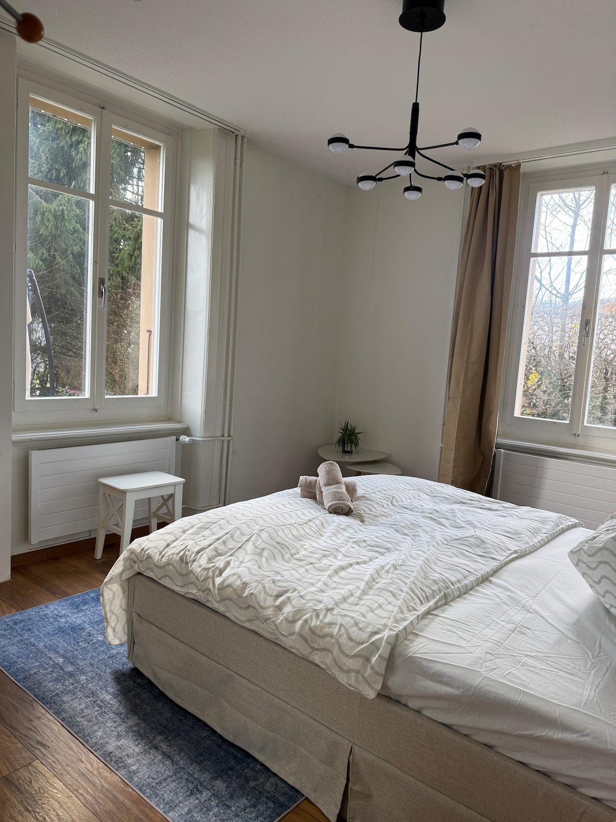 2,5-rumslägenhet med kök (40 m²) Perfekt för upp till 3 gäster eller en familj med 2 barn. Bäddsoffan för den tredje och fjärde gästen är 140 cm bred. Utmärkt bas för dagsturer med tåg eller bil: Härifrån når du enkelt Bern, Berner Oberland (Jungfrauregionen/Interlaken), Luzern med Fyrsjöarna (Rigi/Pilatus), Rhenfallen nära Schaffhausen, Genèvesjön (Montreux) och Juraregionen. Tidig incheckning och sen utcheckning är tillgängliga på begäran.