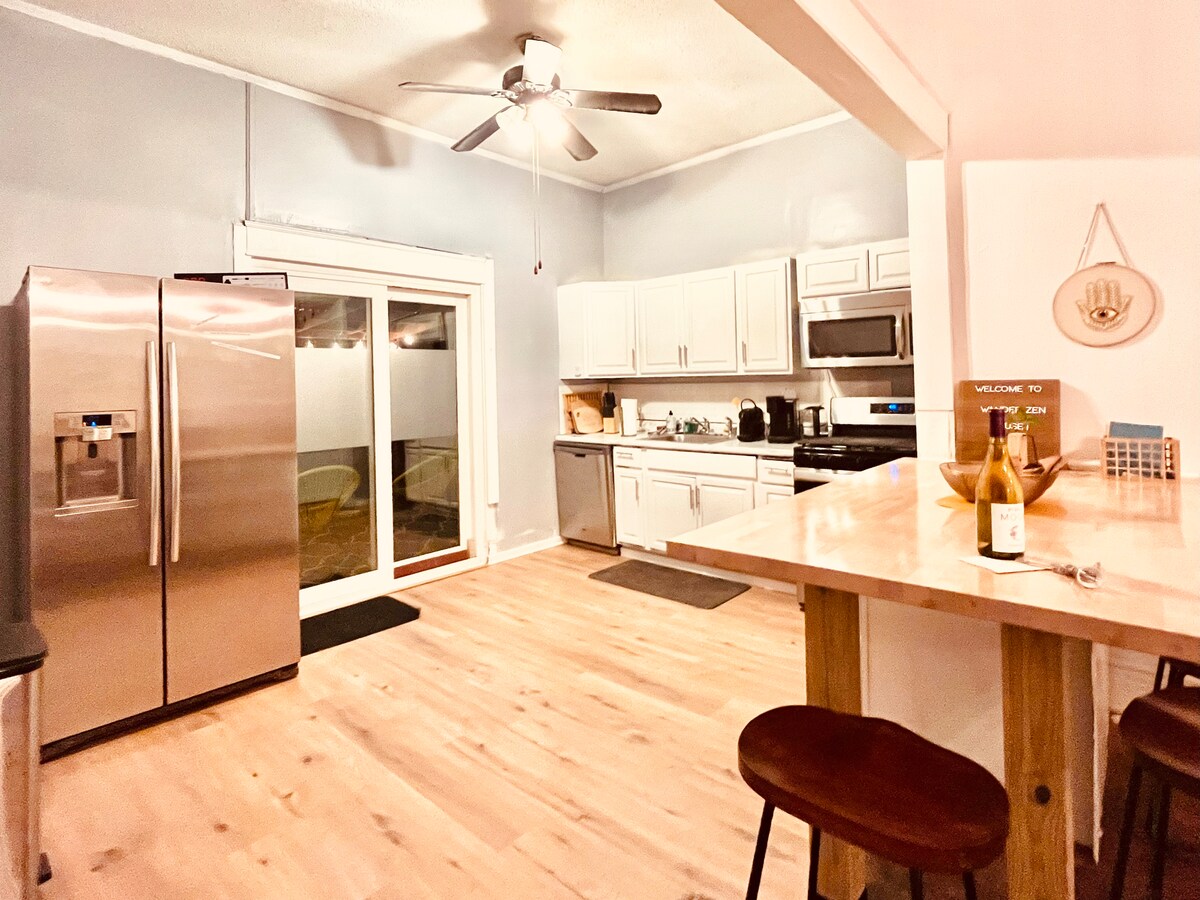 !! Nya golv installerade i januari 2026. Centralt beläget i Junction City, inom gångavstånd från Dillons Market och bekvämligheter, några minuter från motorväg i-70, 20 minuter från Manhattan. Njut av detta eleganta 1920-talshem komplett med möbler från mitten av århundradet och skivspelare, TV, Roku och gratis tvätt, lite träningsutrustning, däck och grill. Alla golv och några skåp var nyligen omgjorda, ny spis, nya matstolar - vi levererar en gratis flaska vin att starta, och koppla av på den stora bekväma soffan!
