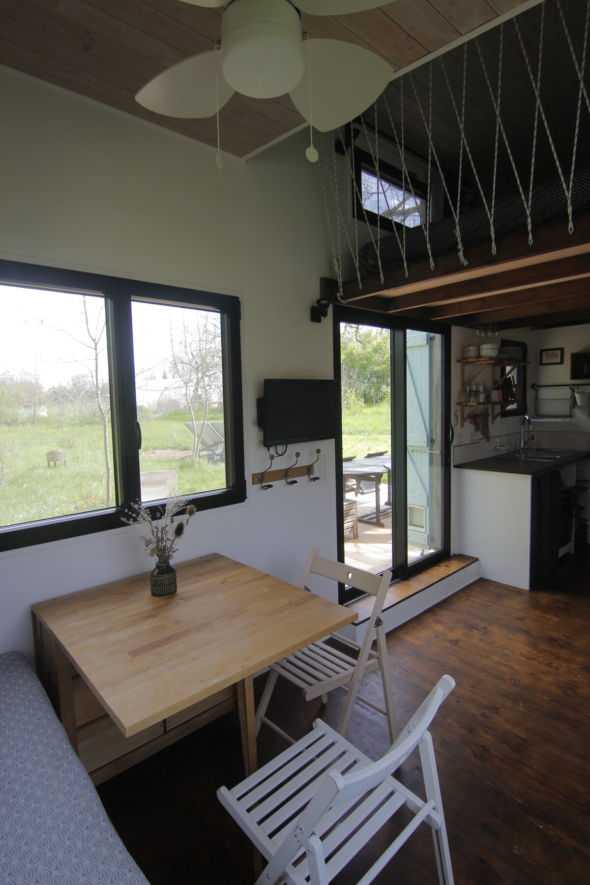 Fly för två till vår ecolodge inbäddad mitt i skogen, med utsikt mot sjön. Komfort och äkthet förenas: vedspis, reversibel luftkonditionering och en dubbelsäng (200x200) för mjuka och vilsamma nätter. Efter en promenad i naturen kan du koppla av i din privata, vedeldade bubbelpool och njuta av naturen omkring dig. En romantisk kokong där lugn och välbefinnande möts, för oförglömliga minnen för två.