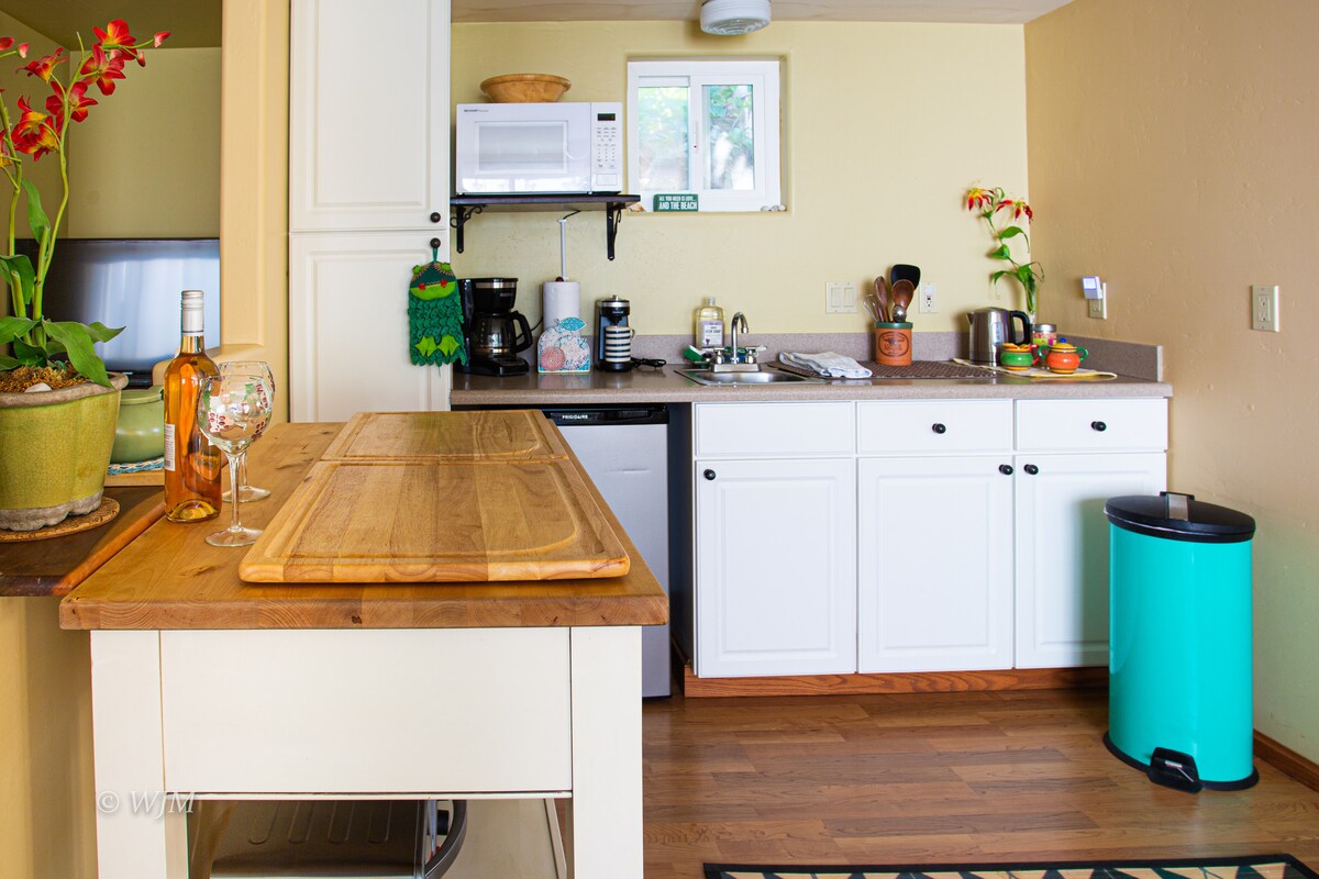 Fristående 400 sf studio med fullt utrustat kök, privat redwood däck, och egen ingång/parkering. Bara en mile till kusten, huset är en 15-20 minuters promenad till stranden och en 25 minuters promenad till Encinitas, en klassisk surfstad. Restauranger, levande musik och pittoreska butiker ligger i närheten av Highway 101. Den stora tropiska trädgården har promenadvägar och sittplatser perfekt att koppla av i. Boendet är en sann oas! City of Encinitas affärslicens #RNTL-007530-2017.
