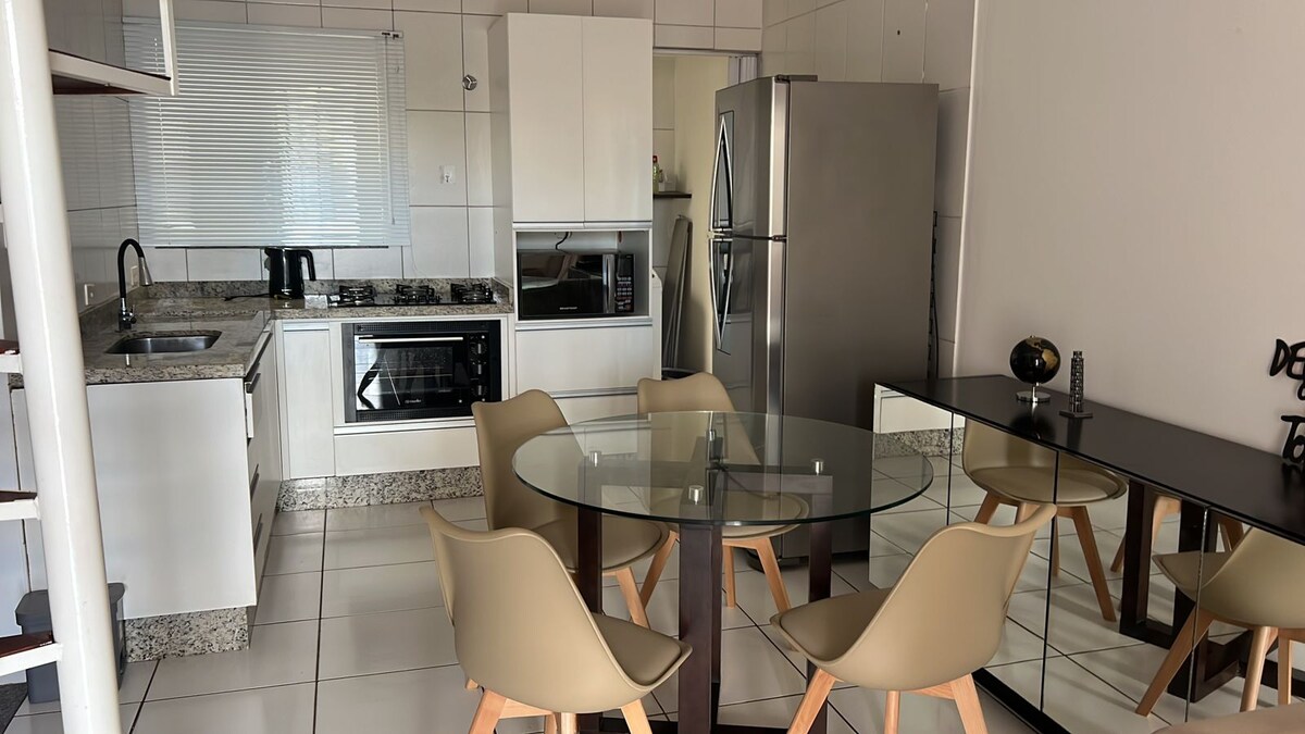 Huset har två rum med varm och kall luftkonditionering, en svit med en king size-säng och ett annat rum med en queen size-säng och två enkelsängar och två slt-madrasser. I sviten finns en smart-TV med netflix, HDTV (hundratals filmer och serier) wifi 750 megabyte, planerat kök med alla hushållsredskap för dina måltider. Sängkläder, bordsdukar och handdukar tillhandahålls. Området övervakas. Gästen behöver inte oroa sig för något. Jag väntar på dig, kom och upplev detta.