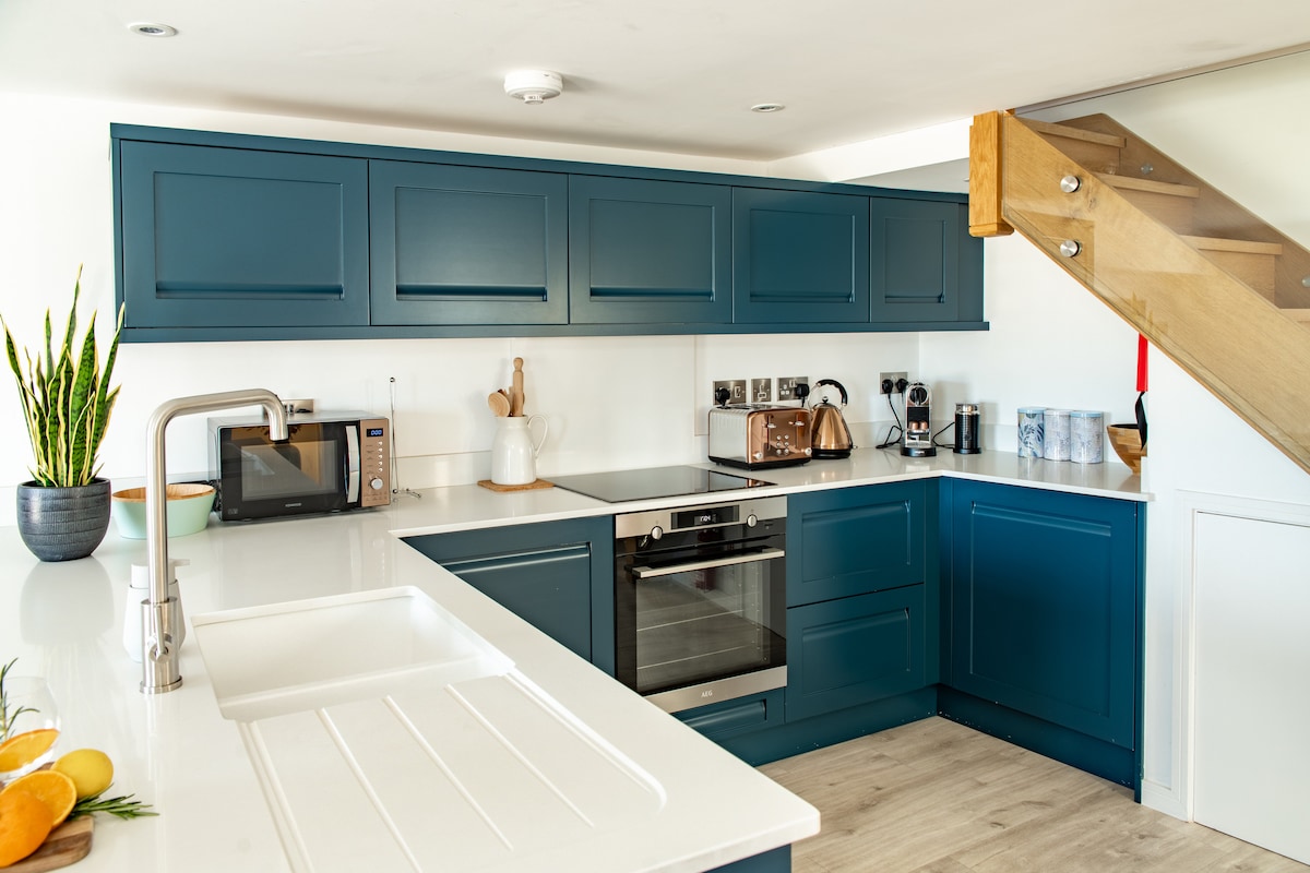 Välkommen till vårt "Rabbit Hole", passande namngivet som du kommer att upptäcka under ditt besök hos oss; bara kika ut genom fönstren! Rymligt men intimt, vi hoppas att vi har ditt semesterboende rätt. Några av de saker vi tänkte på, en super king säng, så att du kan sträcka ut dig som sjöstjärna. Älskar musik, anslut och spela dina låtar på Samsung-högtalaren. 65" TV för att titta på ett Netflix-äventyr? Öppna fönstret i sovrummet, fyll det stora badkaret och fördjupa dig i natthimlen med ett glas bubblor