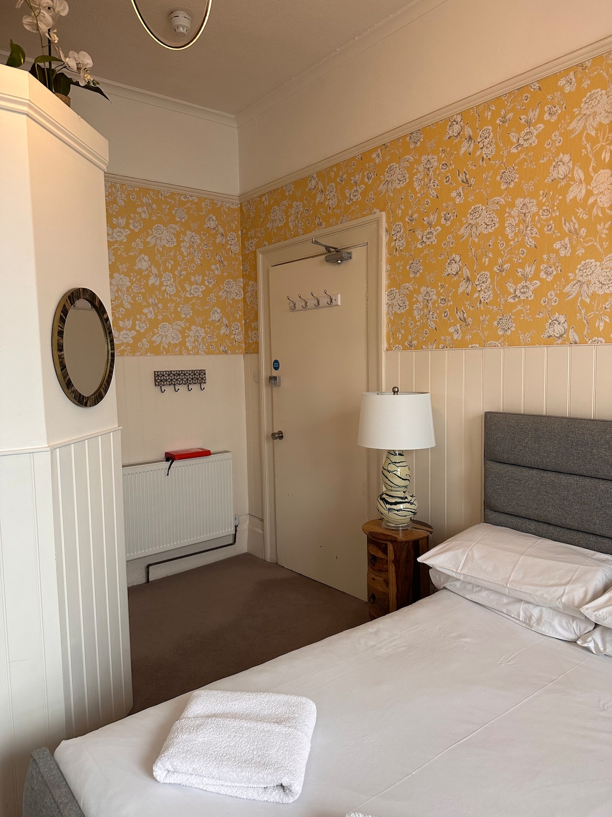 Ett stenkast från havet. Nyligen renoverad till högsta kvalitet hotellstandarder. Mysigt bijou dubbelrum på bottenvåningen tillgängligt för en eller två personer inom vårt vackra pensionat. Skräddarsydda inbyggda möbler. Dubbelsäng i full storlek, sängkläder och handdukar av högsta kvalitet, fjädrad madrass, digital platt-TV med freeview-kanaler, gratis wifi, generös dryckesbricka, hårtork. Modernt kompakt badrum med duschkabin.