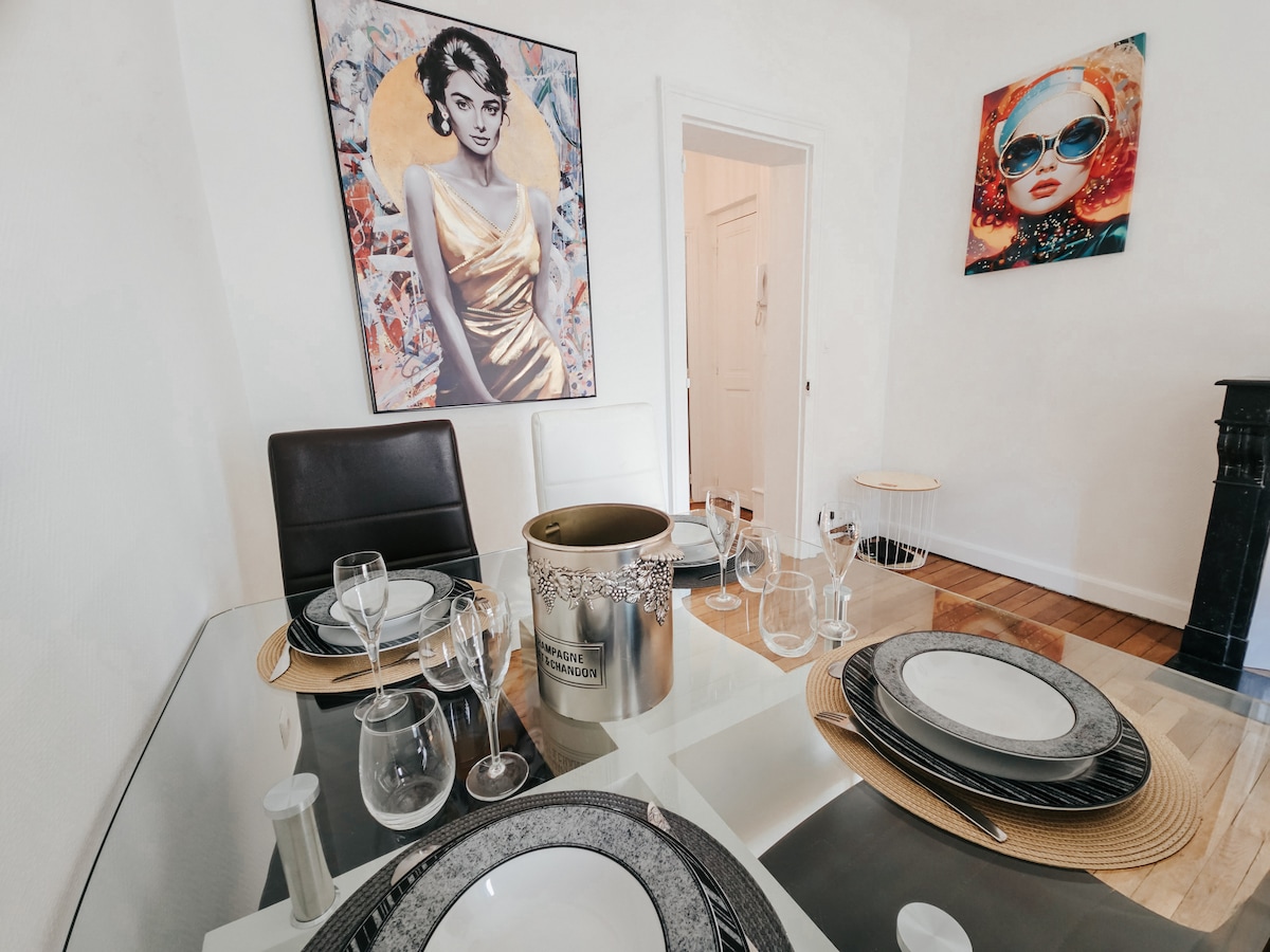 Mysig lägenhet i Epernays stadskärna, 5 minuter från den berömda Avenue de Champagne! Den är🍾 klassad 3-stjärnig, helt renoverad, funktionell och lugn. Köket är fullt utrustat, sovrummet är rymligt och bäddsoffan 140x200 cm gör att du kan komma med vänner eller familj. Alla butiker ligger i närheten. Du hittar all komfort för en trevlig vistelse! ✨️🧘🏻♂️ Lakan, handdukar, duschgel och schampo ingår.